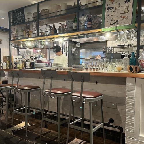 カウンター席もご用意しております。おひとり様でもお気軽にご利用いただけるお席で、オープンキッチンならではの臨場感もお楽しみいただけます♪